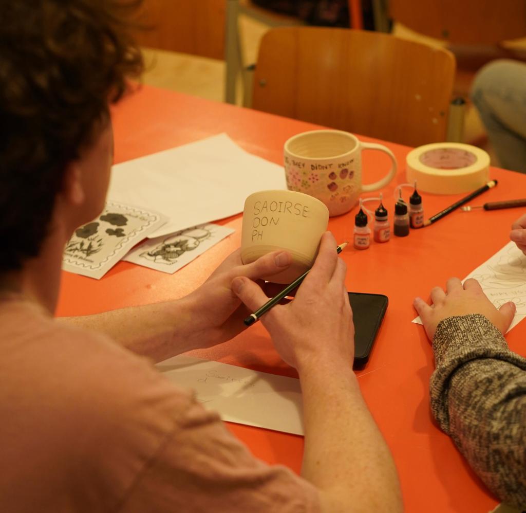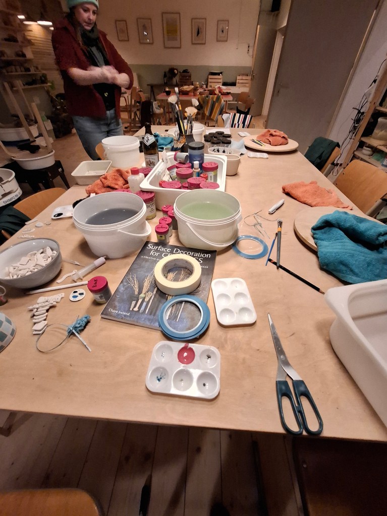 In this workshop you will decorate handmade ceramics made by our studio members. You can choose between greenware (unfired clay), using our studio engobes with techniques like sgraffito and carving, or bisqueware (once-fired pottery) decorated with underglaze. We’ll demonstrate all techniques and provide every tool you need.